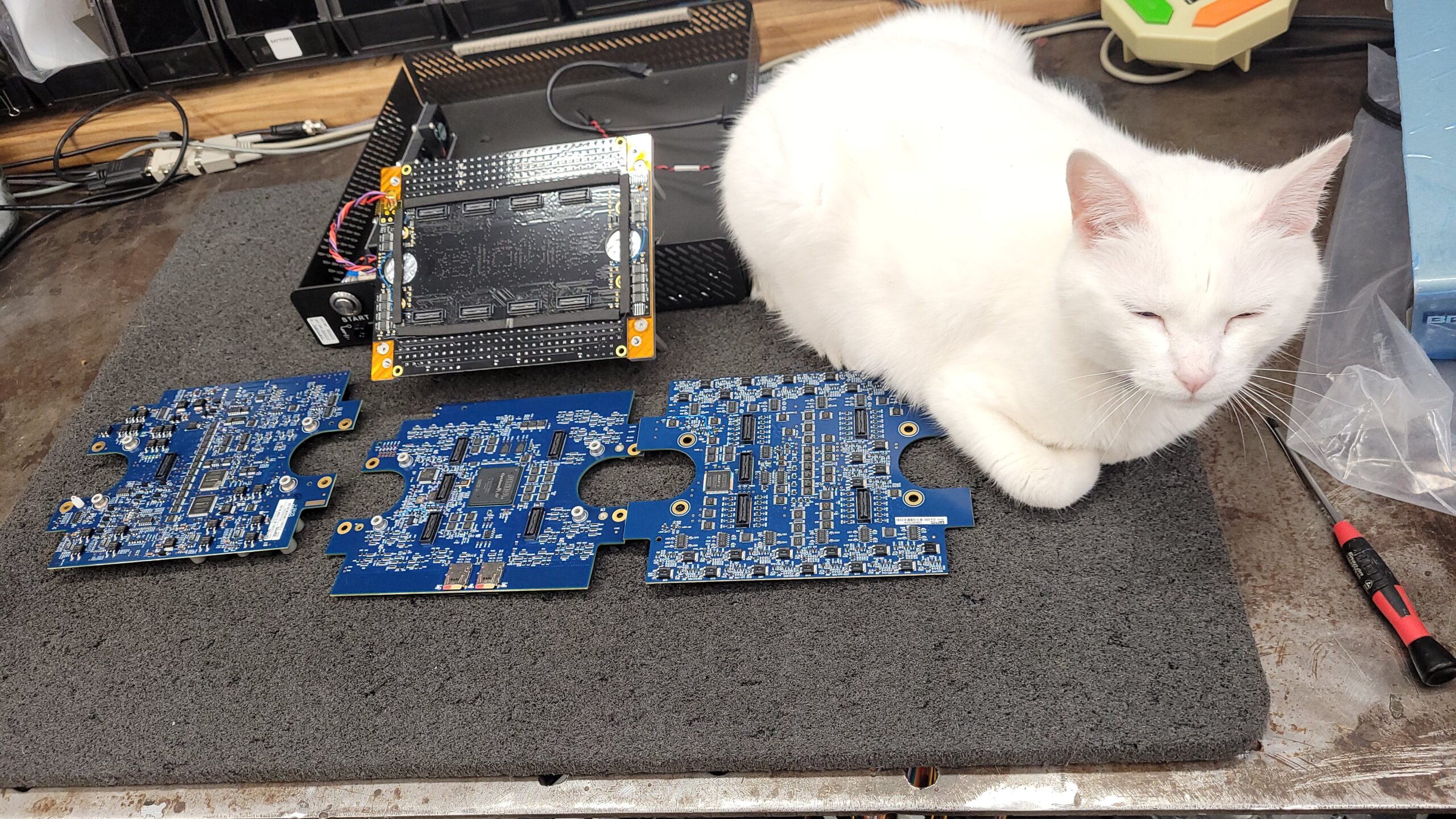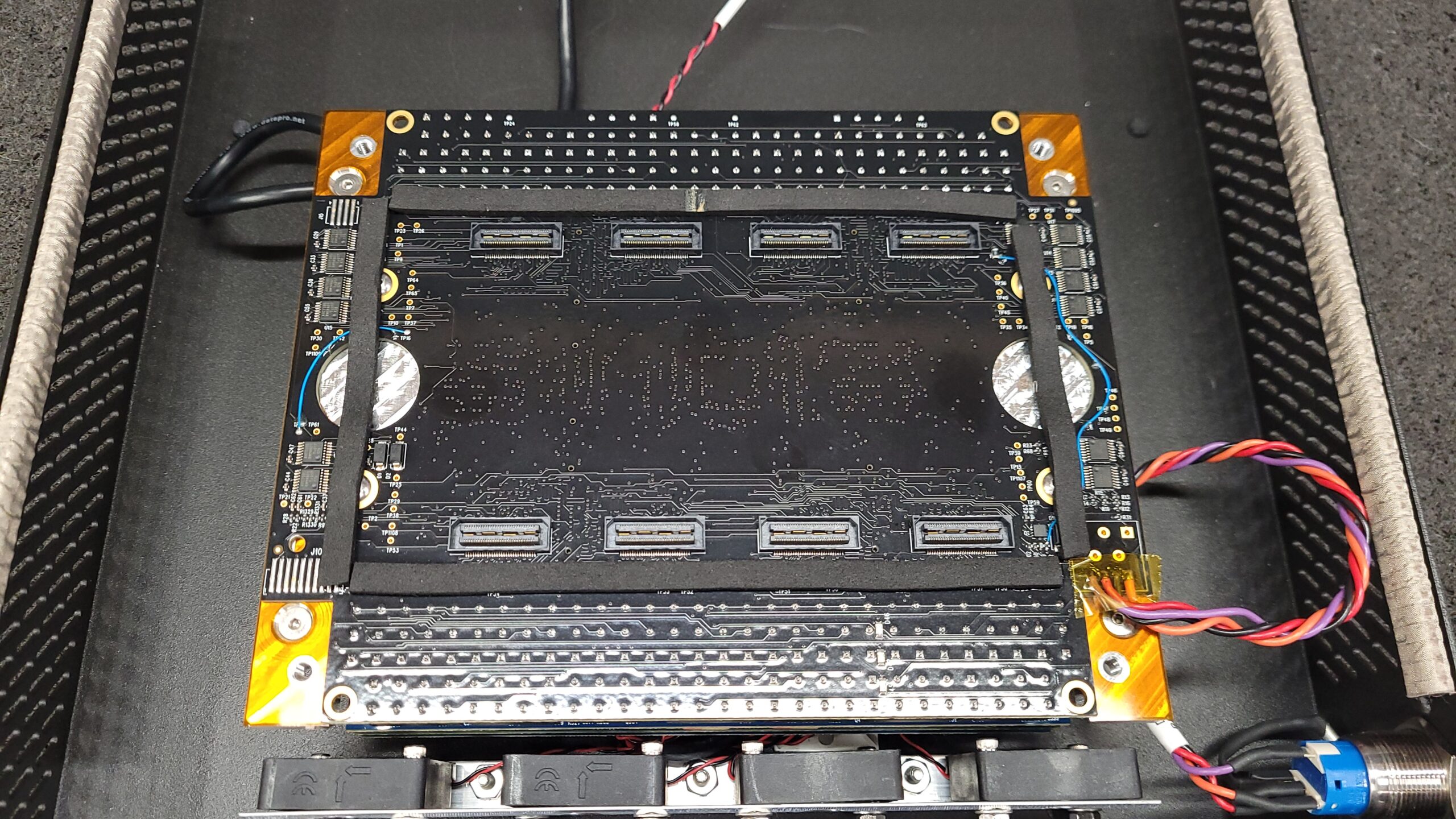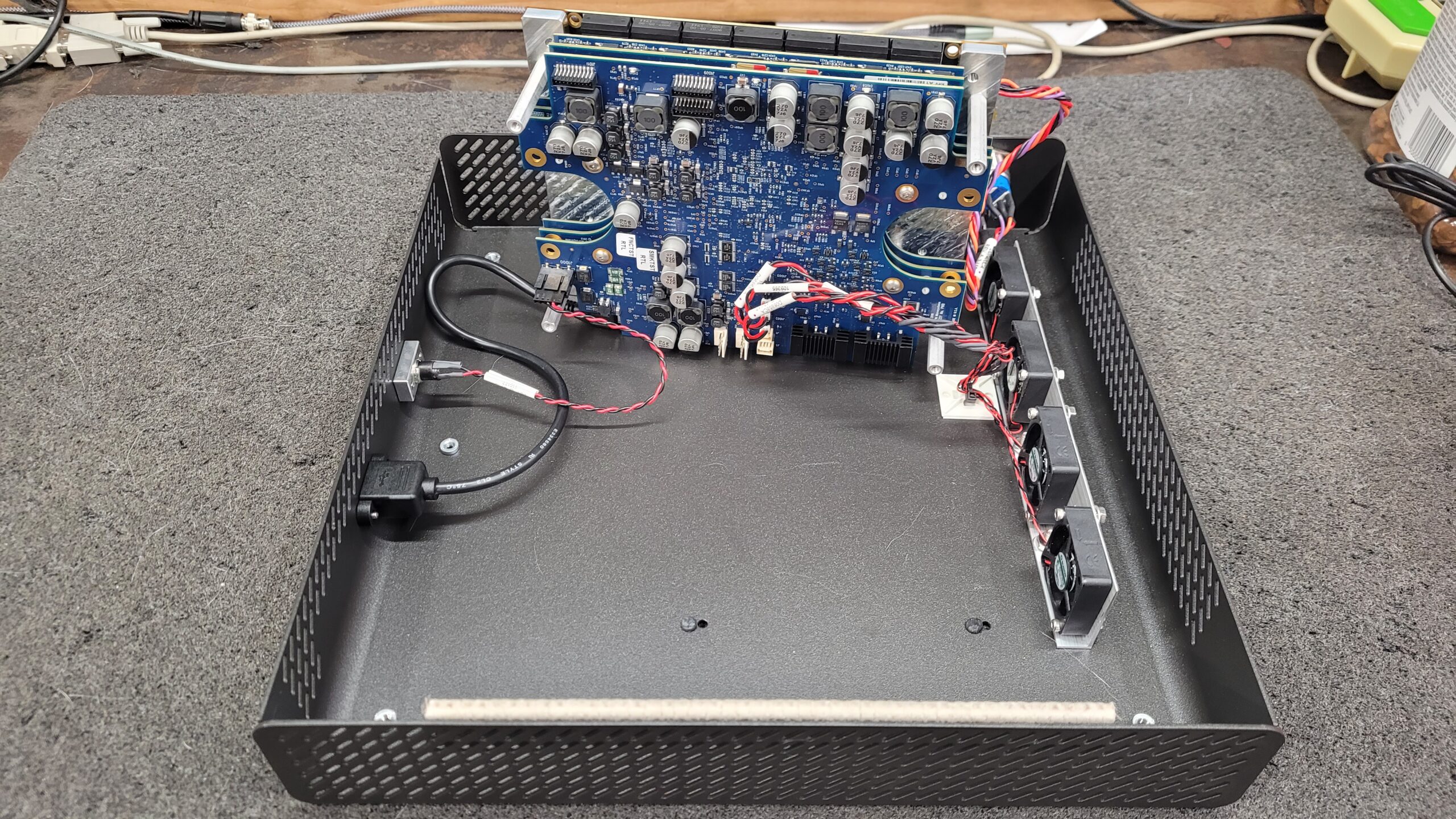 Board stack coming out of the chassis.