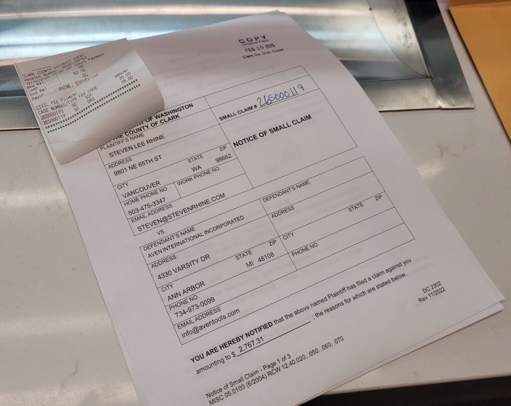 In our video conference Mark Kanpurwala (AKA Mansoor Bakir Kanpurwala) also threatened to get my youtube canceled. So, If Aven Tools wishes to have a Repair War so be it. Yes, I will be drafting letters to the attorney generals in the states I have economic nexus in. There may be an alternate remedy In Oregon I may have to explore. I will update if I go that route.