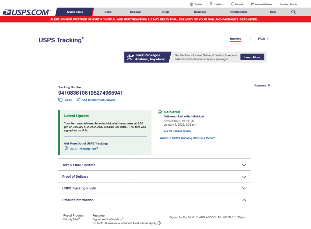 01/01/2026 I E-mailed and Also Sent a Letter USPS with Signature Confirmation With the Print out of Washington’s Right to Repair Law RCW 19.415 to Aven Tools the thye Received it on Jan 5th The Letter was Requesting Parts and Documentation on fair and reasonable terms. Letter was Ignored.