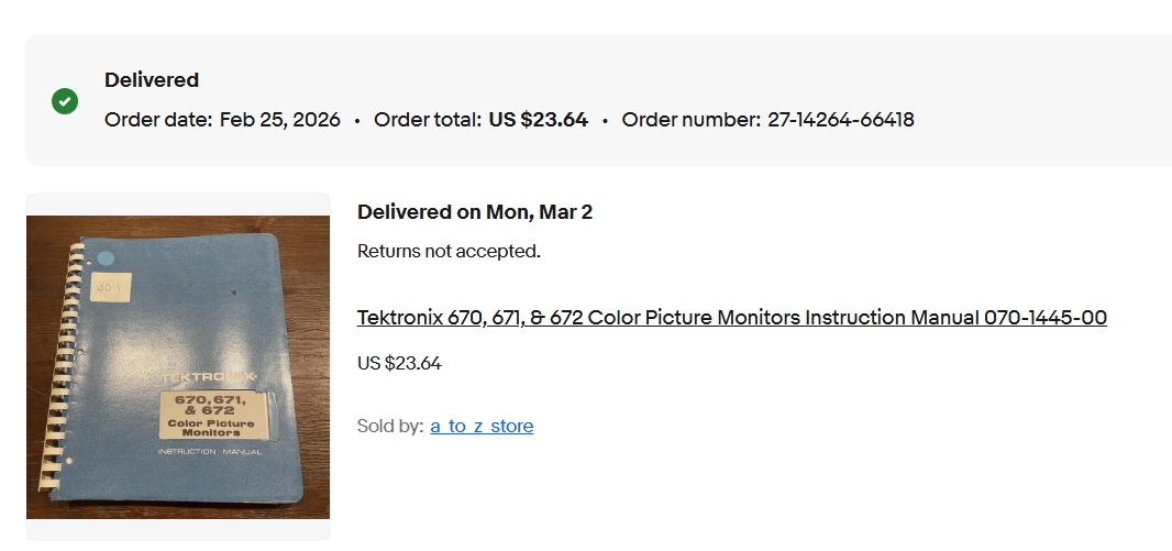 02/27/2026 I now have the Manual for the 670, 671, 672 Monitors.