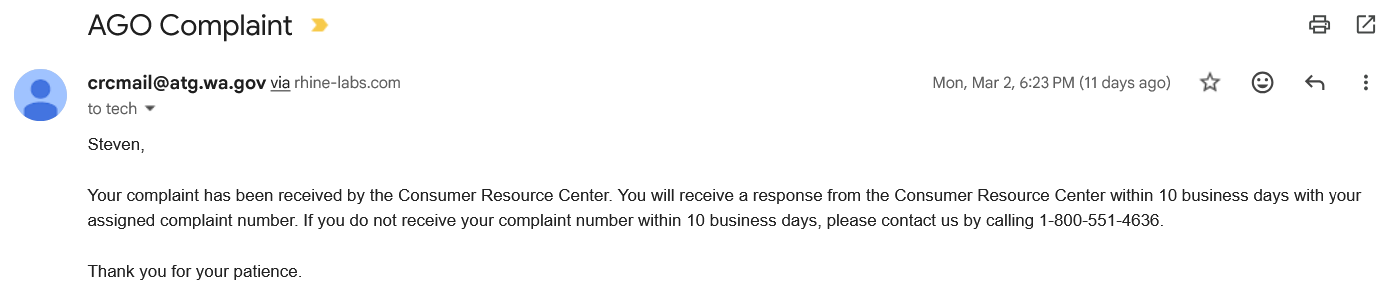 I Filled out the questionnaire and submitted on Feb 4th 2026 it and it was crickets for a couple weeks On March 2nd I made a Complaint with the Washington State Attorney Generals Office. I have yet to here back from them.