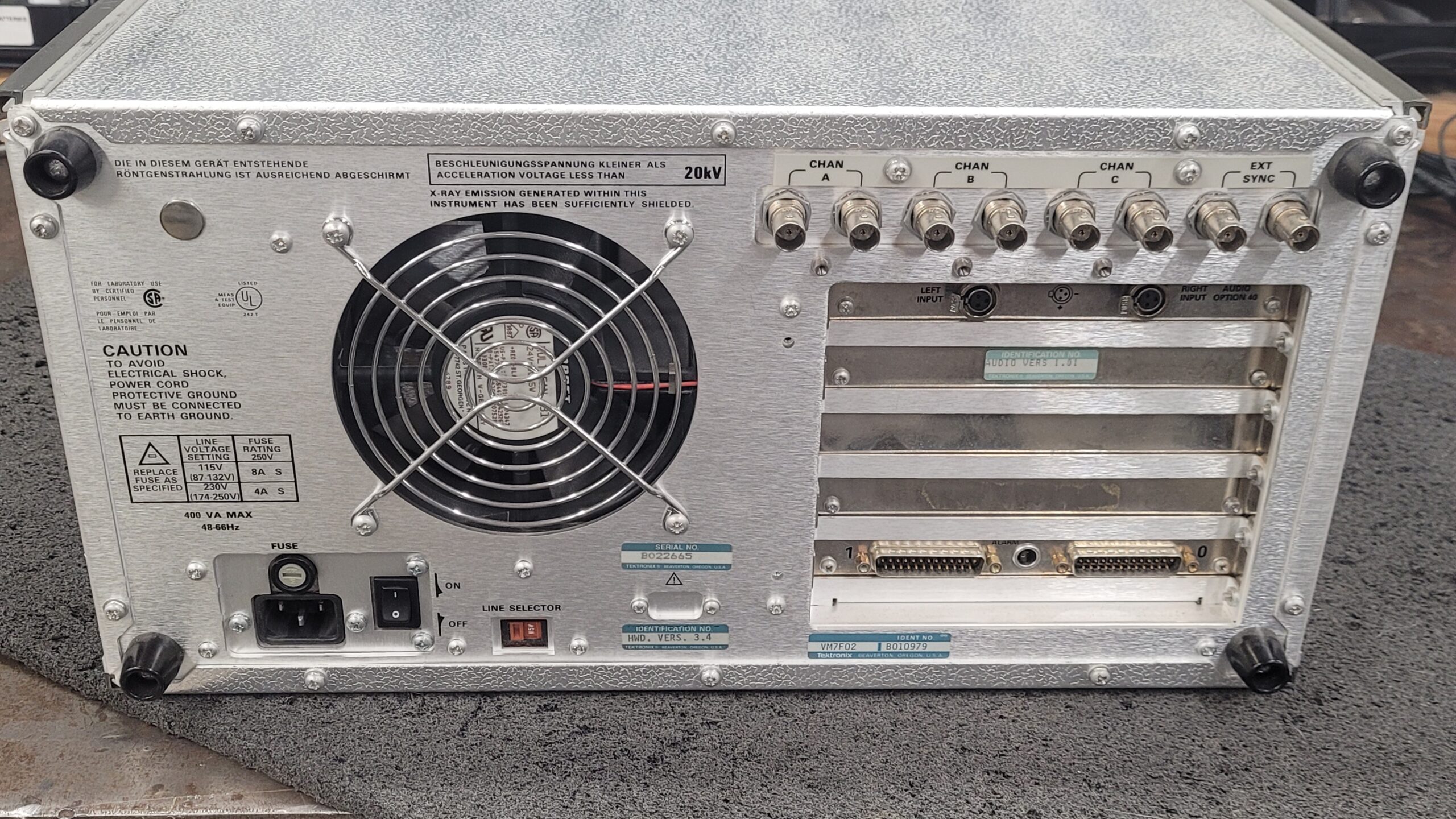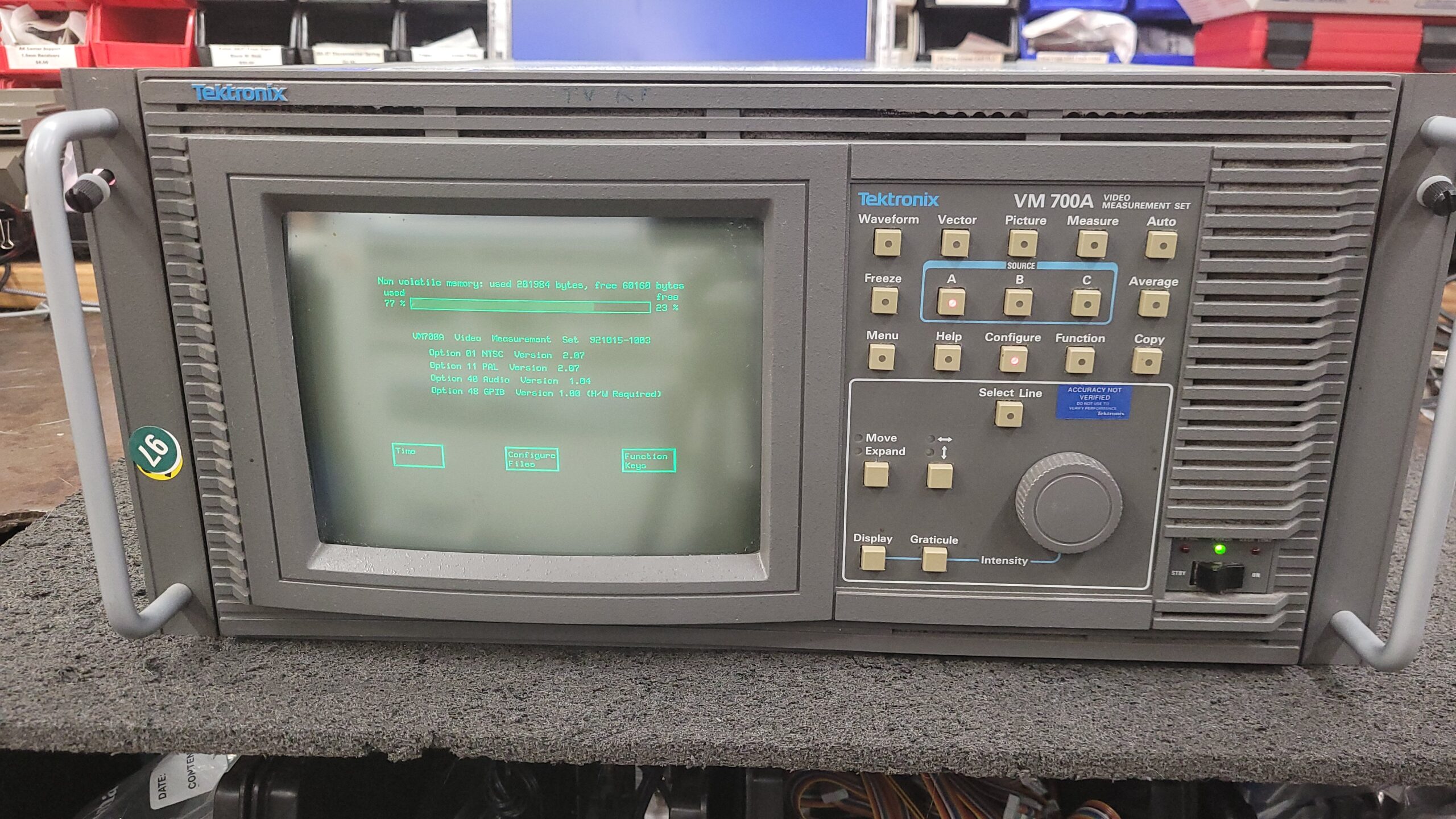 Video of Tektronix VM700A booting up.
