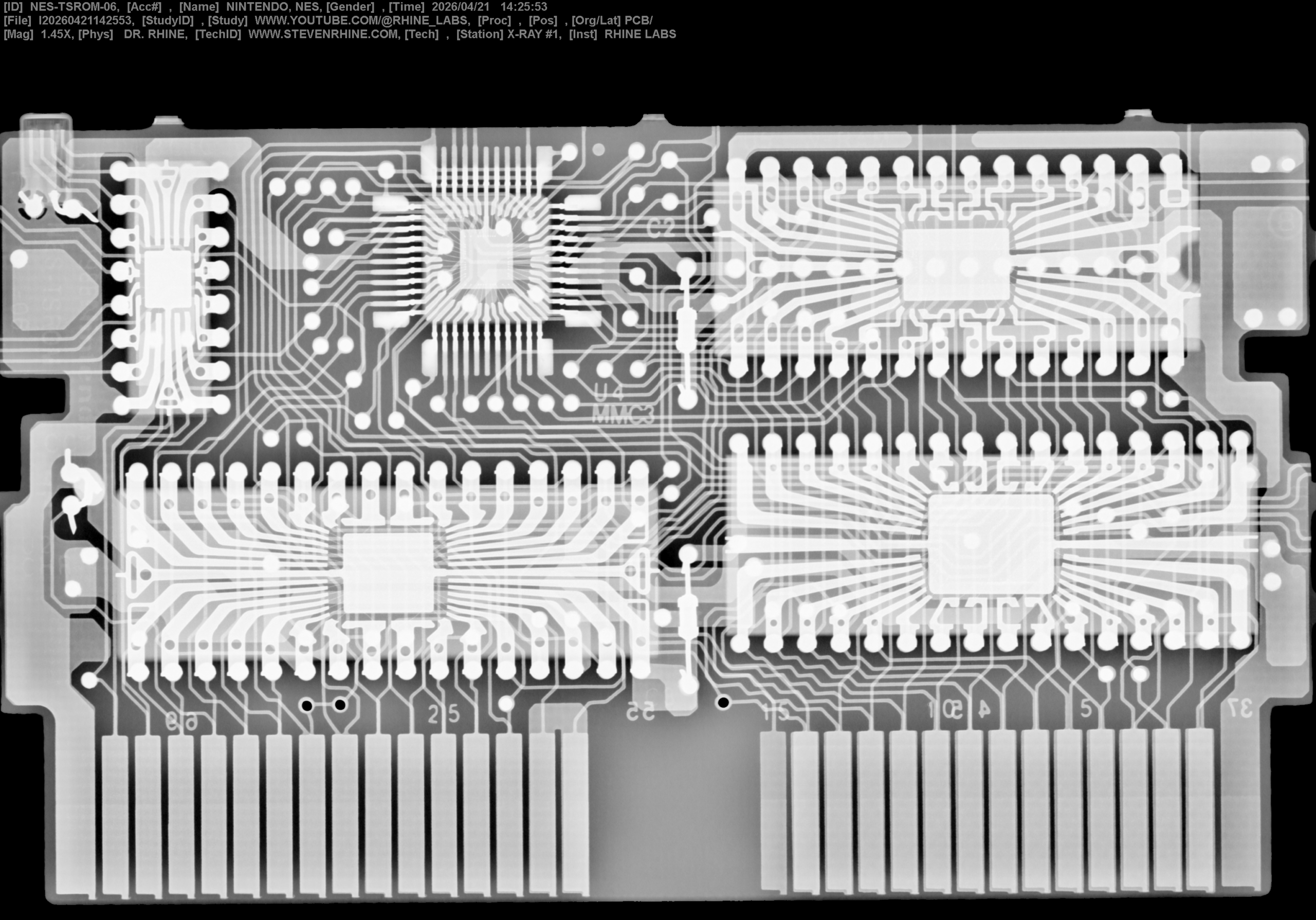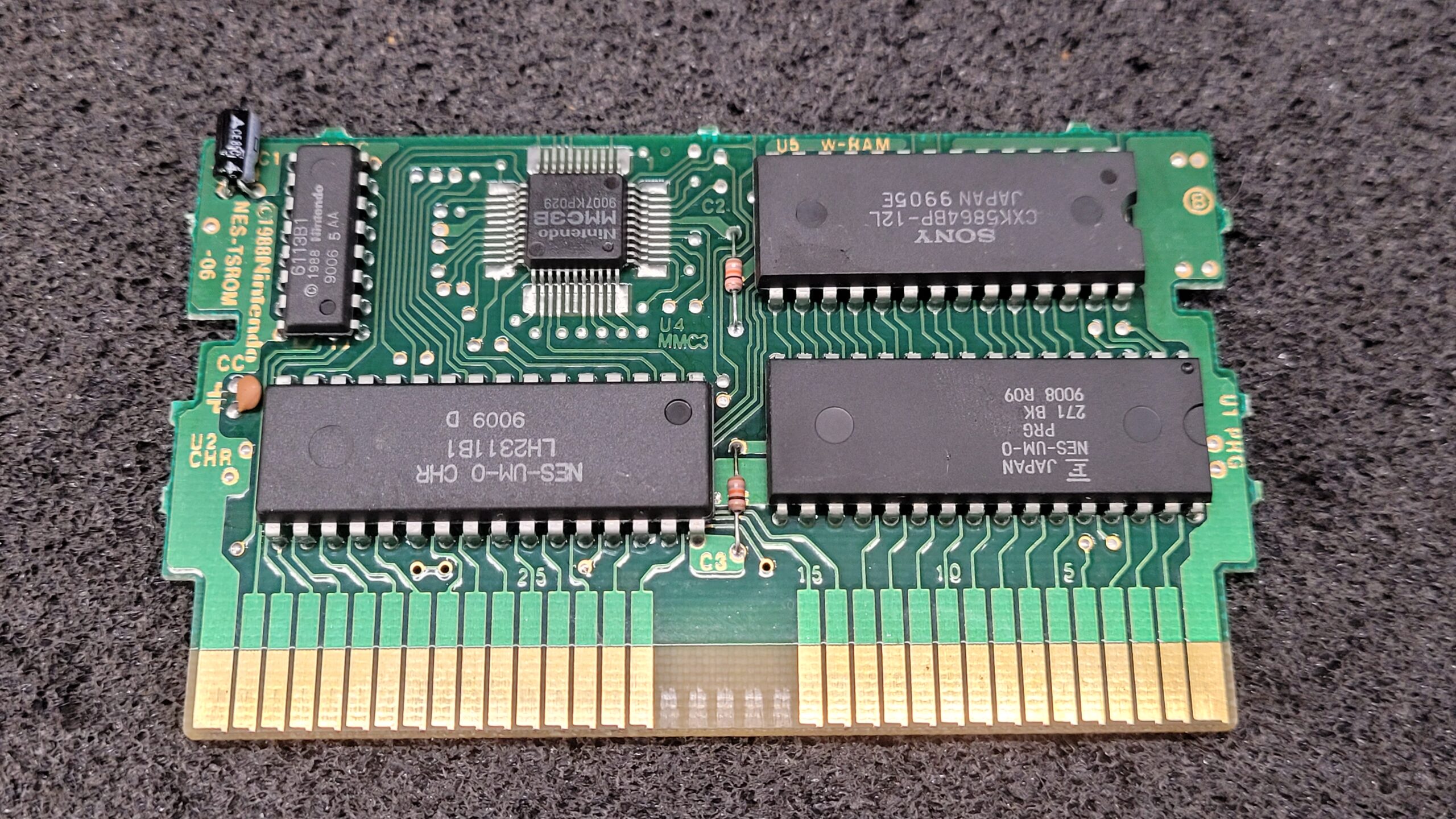 PCB X-Ray of the Week | Nintendo NES Super Mario Brothers 3 Cartridge PCB X-ray NES-TSROM-06 Mapper this game pushed the 8 bit NES hardware to its limits.