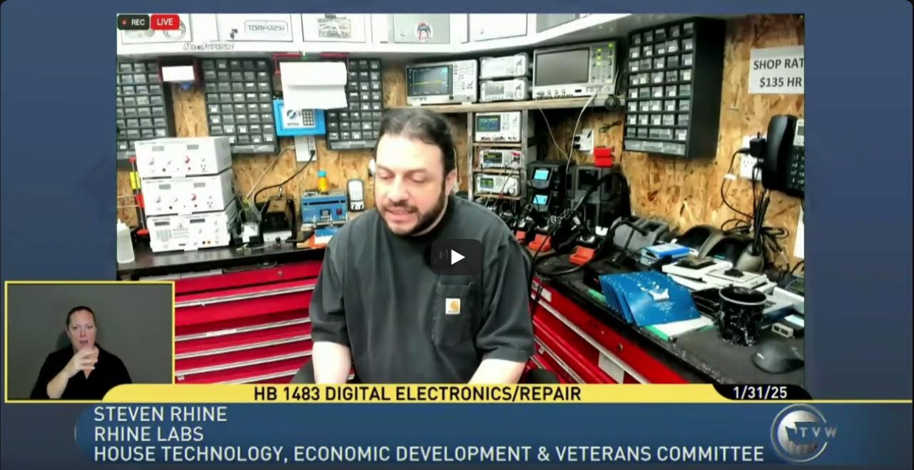 This is My 3rd time testifying in font of law makers. As a Small independent repair shop, the right to repair is essential to our success or failure in the…